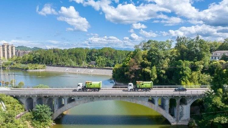 8月20日,南川区南太路黎香湖路段,蓝天白云下“环保卫士”正在工作。通讯员 罗建 摄