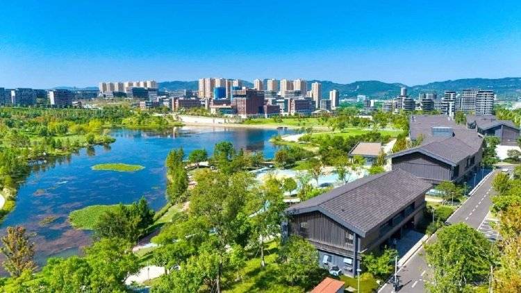 8月20日,永川区兴龙湖片区蓝天白云,水清岸绿,景美如画(无人机照片)。特约摄影 陈仕川