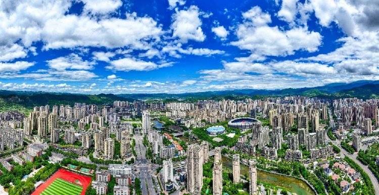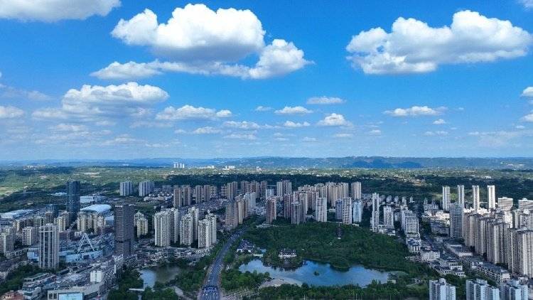 8月20日,南川城区呈现蓝天白云的美丽景象(无人机照片)。通讯员 甘昊旻 摄