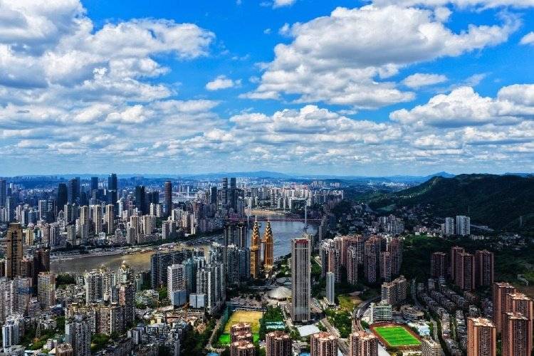 8月20日,南岸区,蓝天白云与城市相互映衬,宛如一幅美丽的画卷。记者 张锦辉 摄