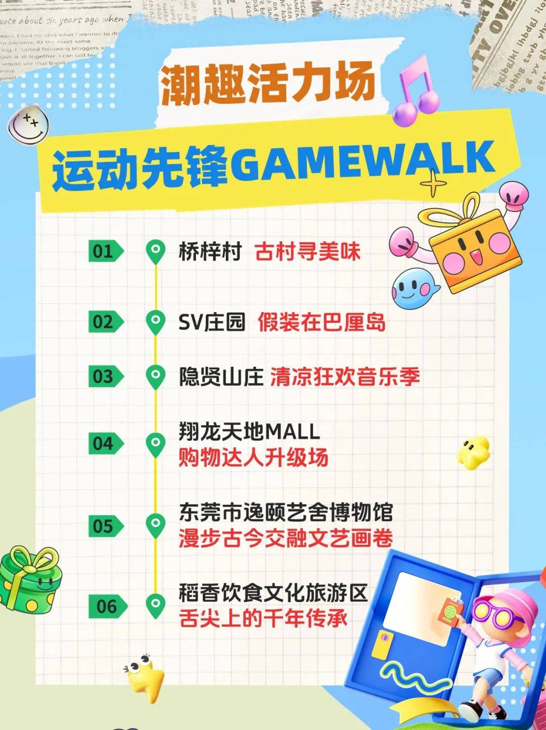 桥梓村(古村寻美味)→SV庄园(假装在巴厘岛)→隐贤山庄(清凉狂欢音乐季)→翔龙天地MALL(购物达人升级场)→东莞市逸颐艺舍博物馆(漫步古今交融文艺画卷)→稻香饮食文化旅游区(舌尖上的千年传承)
