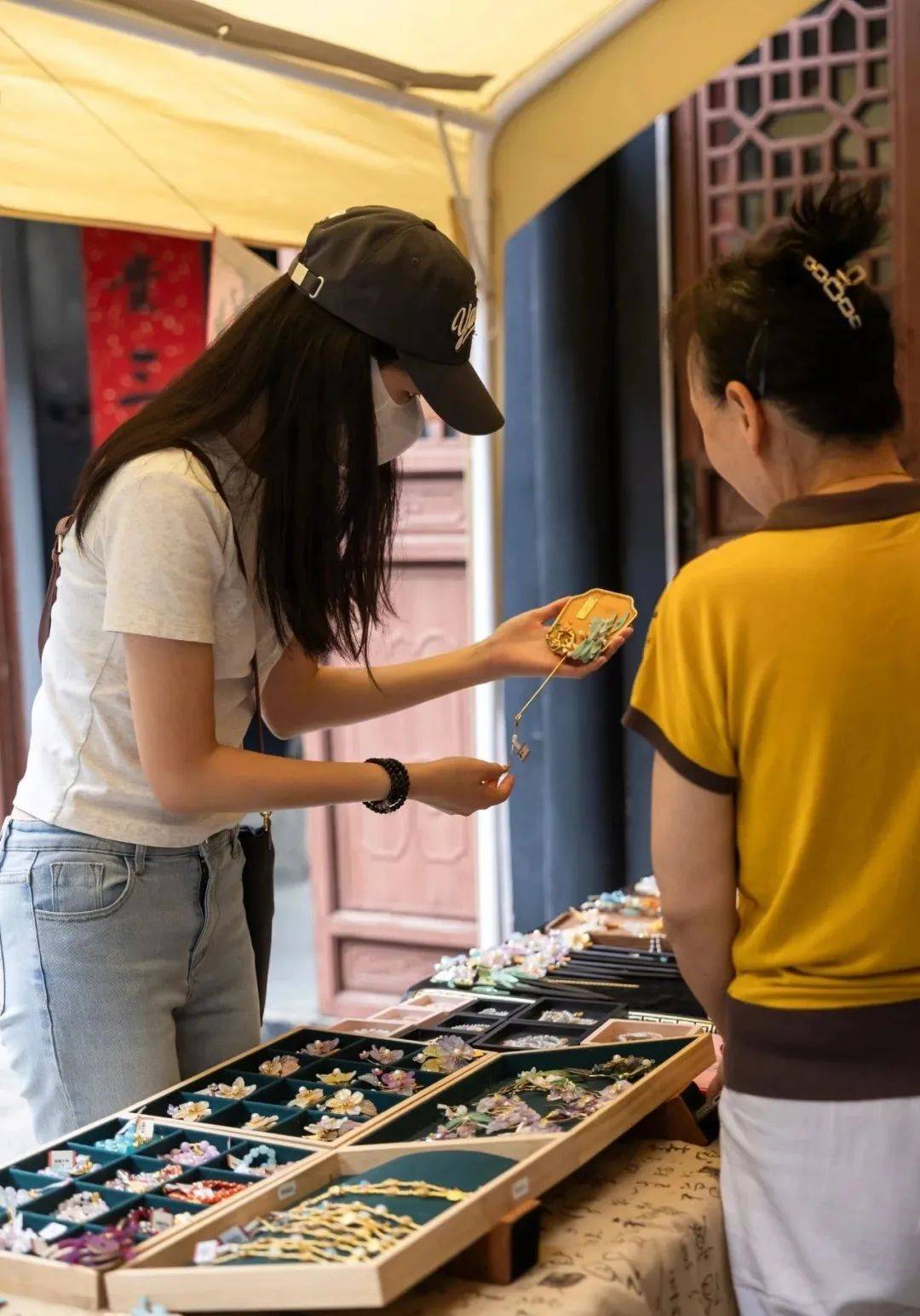 她从包中掏出了一件剪纸摆件、两个面塑玩偶,“这些是我在户部山买的,那边有很多非遗摊位,卖的东西都很吸引人。”