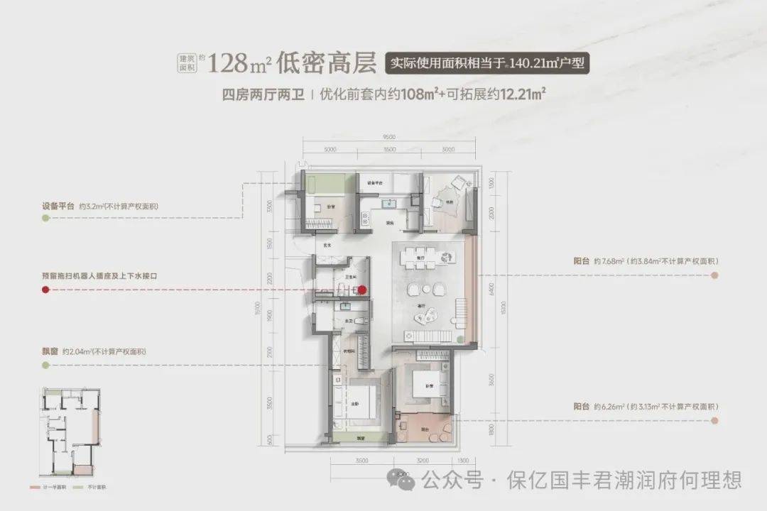 139㎡四房两厅三卫:【实现岛台空间+4房+1功能房】功能升级,实际面积相当于市面上在售160㎡使用面积