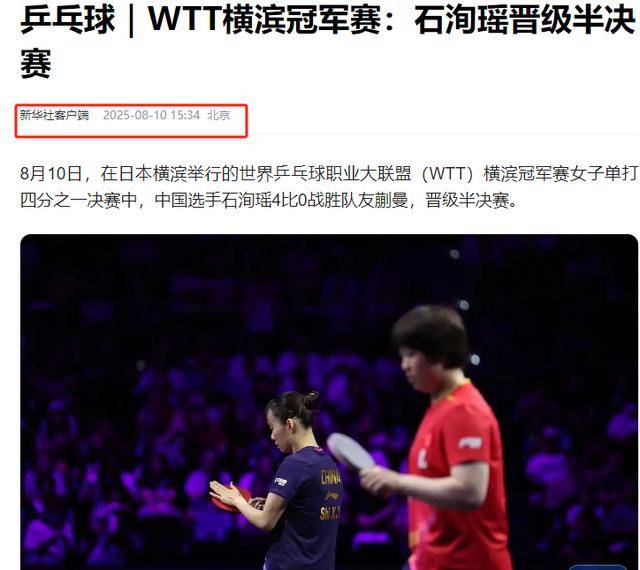 信源:新华社 2025年8月10日关于“乒乓球|WTT横滨冠军赛:石洵瑶晋级半决赛”的报道
