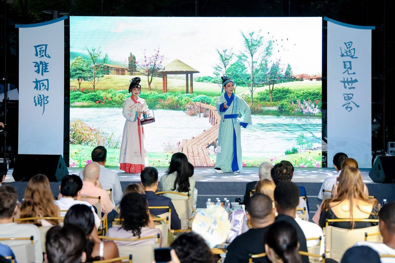 相继登台表演的桐乡花鼓戏《庵堂相会·过桥》、桐乡三跳等桐乡传统民间技艺,则展现了独具魅力的“chinese style”,将非遗传承的精妙与现代都市的活力融为一体。
