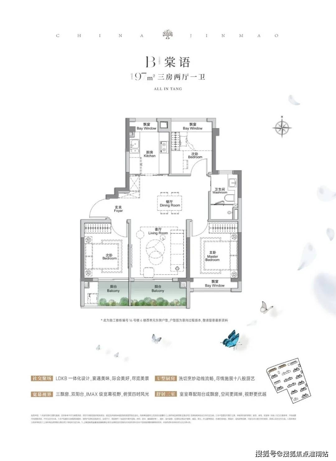 、再加上“3个飘窗+双面阳台系统”,不管是采光、视野、通风、私密性,还是实用性都十分出色。南向配置观景阳台+家政阳台,通过可分可合的隔墙实现“景观-功能”自由转换,阳台栏板采用全景玻璃,更大限度引入社区精彩景观视野。