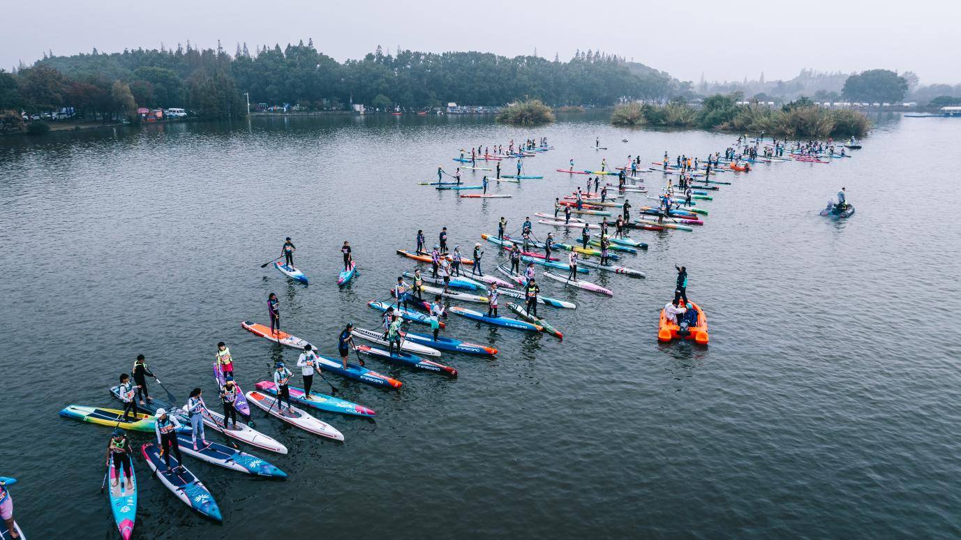 900多名来自全国各地的参赛选手齐聚尚湖,在波光粼粼的湖面展开速度与技巧的巅峰对决。赛事创新采用 “冠军赛总决赛 + U系列赛”双赛联动模式,既展现了国内桨板运动的最高竞技水准,为专业选手提供了切磋提升的顶级平台,又为青少年搭建了专业化成长通道,实现了竞技体育与群众体育的协同共进。专业选手的精彩角逐为赛事注入了高强度的观赏性,大众选手的积极参与则扩大了桨板运动的普及度,让体育精神在江南山水间广泛传递,为江南 “户外运动第一城” 凝聚起全民参与的磅礴力量。