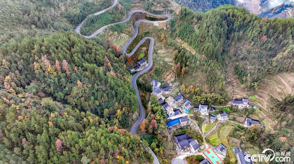 重庆市酉阳土家族苗族自治县丁市镇岩门底,“云端公路” 在云雾中若隐若现,盘山路蜿蜒于山峦村落之间。