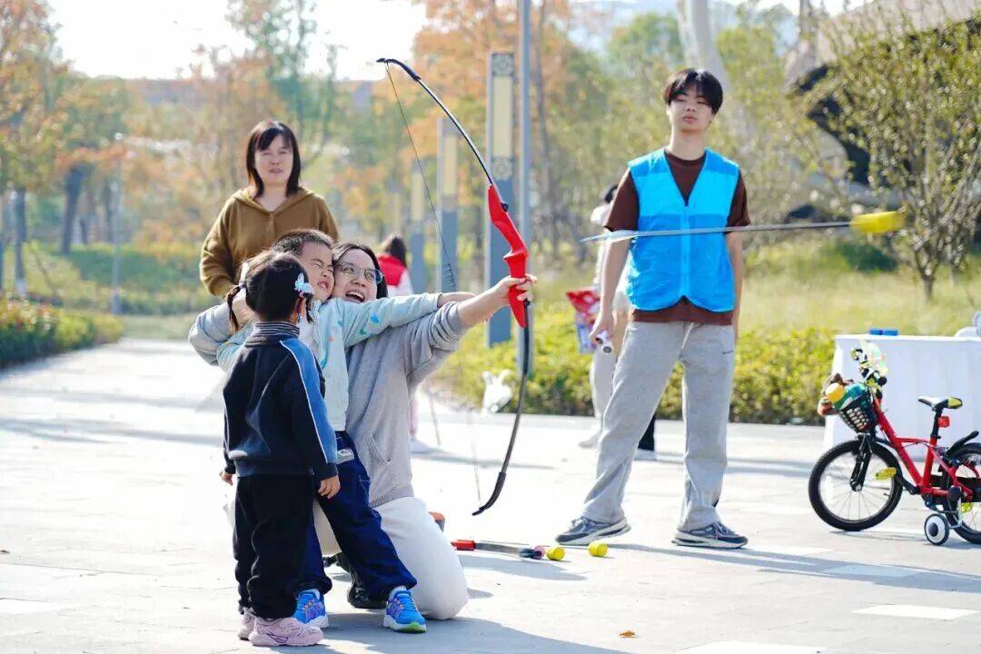 运动会核心环节——民族传统体育体验打卡区人气爆棚。投壶、沙嘎、射箭、踢毽子、高杆绣球、三人板鞋、押加等十余项传统体育项目依次排开,参与者以“集章打卡”形式逐一体验。各族群众不仅锻炼了体魄,更在欢声笑语中拉近了距离,深化了对中华优秀传统文化的认同与归属感。