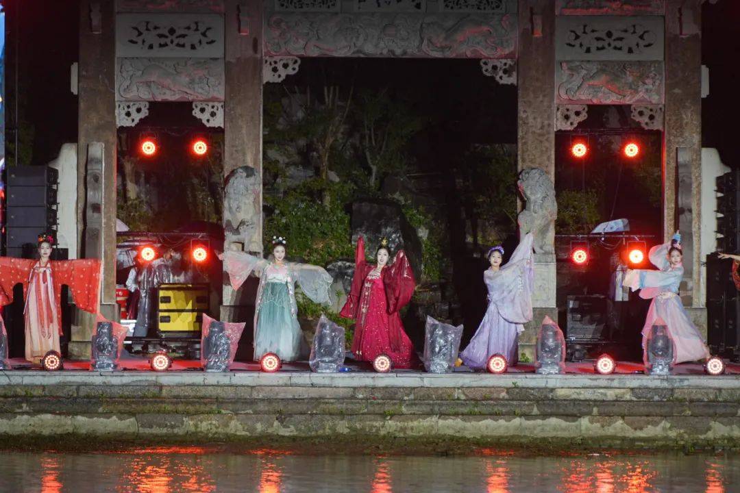 在悠悠明快的音乐旋律中,浮生若梦演员方阵及大学生汉服社演员盛装登场,他们踩着古典音乐节奏翩翩起舞,开始了暖场巡游。随后亮相的开场舞《汉风古韵》精美绝伦,艺术感拉满;由梅岭小学西区校的小朋友们带来情景诗表演《梦回邗江》,细数邗江历史文化,抒发热爱家乡的豪情;琵琶舞曲《浮光若影》如梦如幻,镜头追光湖面小船,大屏播放背景视频,邗江文旅经典景点和特色风味食品次第而出;戏曲走秀《戏梦人生》压轴,多媒体投影将江南水乡的黛瓦白墙点染为写意画卷,传统戏曲元素与当代极简美学碰撞出了惊艳火花。