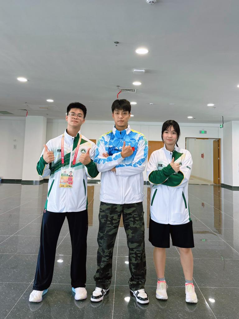叶文喆自小爱看武侠片,在选修课上接触民族武术后就潜心钻研,经常在网上看国内大型赛事直播,还是四川队队员付桢丽的“迷弟”。一场比赛后,他向付桢丽要签名,并赠送了对方澳门特色徽章。