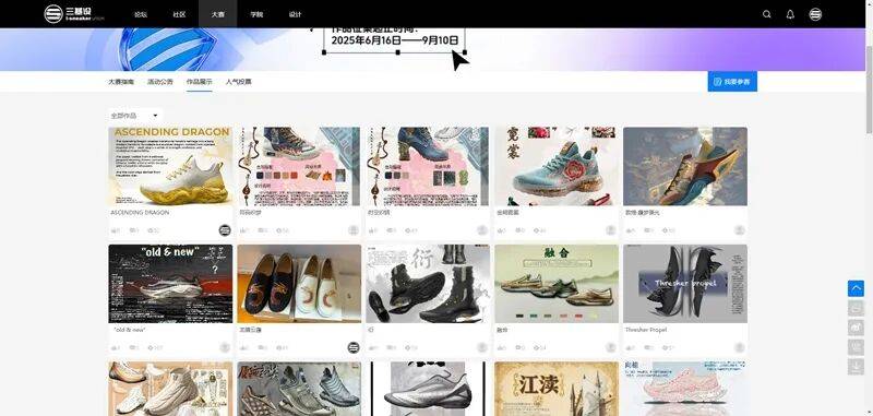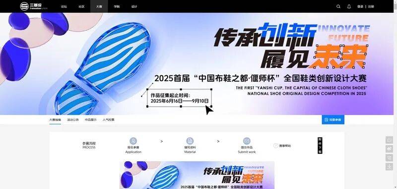 · 核心垂直平台全覆盖:作品征集依托中国鞋类设计师联盟官网(三基设网),并在海峡国际设计网、穿针引线服装网、环球鞋网、设计竞赛网、高校设计竞赛网等十余个行业及设计类头部网站进行持续性专题报道与 banner 曝光。