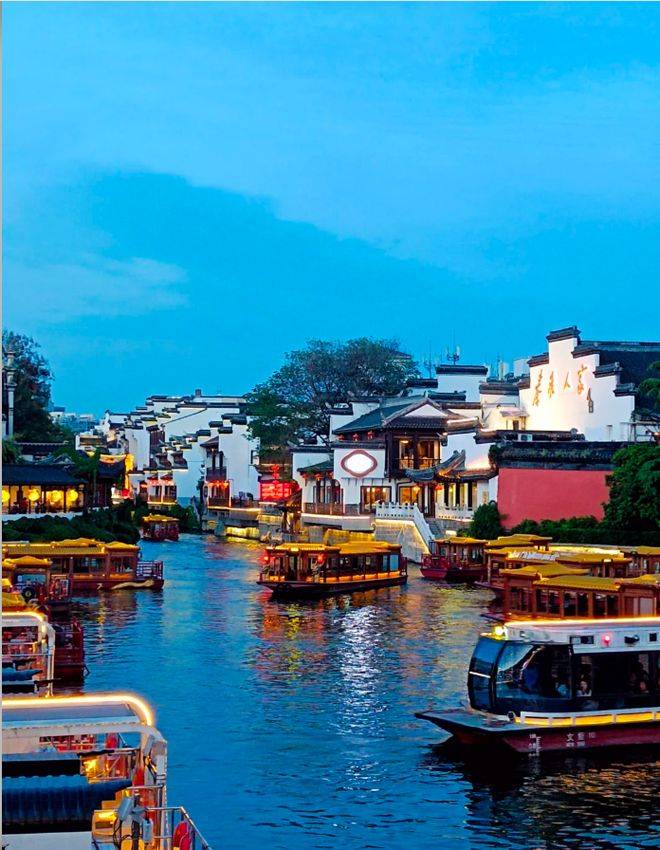 傍晚:登上独家赠送价值 80 元的外秦淮河画舫,开启 “十里秦淮” 夜游之旅。画舫采用仿古设计,舒适软座搭配观景窗,沿途欣赏朱雀桥、乌衣巷、夫子庙等历史遗迹,灯光映照下的古河两岸尽显 “六朝金粉地” 的诗意。导游同步讲解秦淮八艳、江南贡院的传奇典故,让夜景更具文化底蕴。