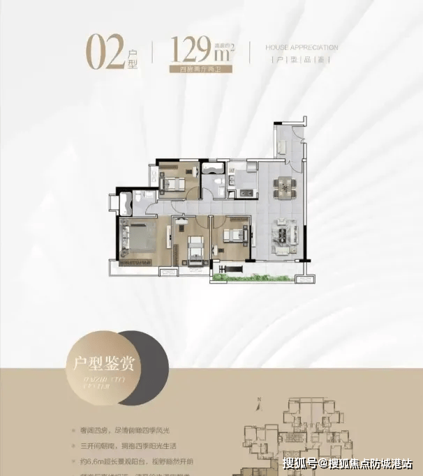 这款户型是改善家庭的首选,适配二胎家庭或三代同堂。采用南北对流板式结构,干爽通透,居住舒适度极高;四房分散布局,保障了每个家庭成员的私密性。主卧带独立卫浴与衣帽间,堪比星级酒店套房,给主人足够的私密空间;长辈房安静便捷,方便长辈休息。4.5米宽厅搭配开放式餐厨与岛台,既能满足日常家庭用餐需求,又能轻松容纳亲友聚会,彰显品质生活格调。6.6米南向观景阳台,可打造空中花园,闲暇时喝茶聊天、欣赏风景,惬意十足。