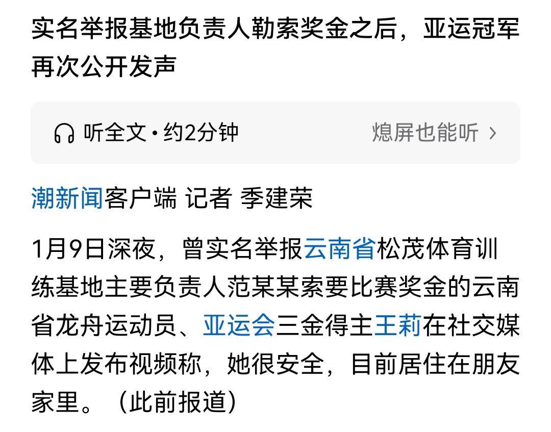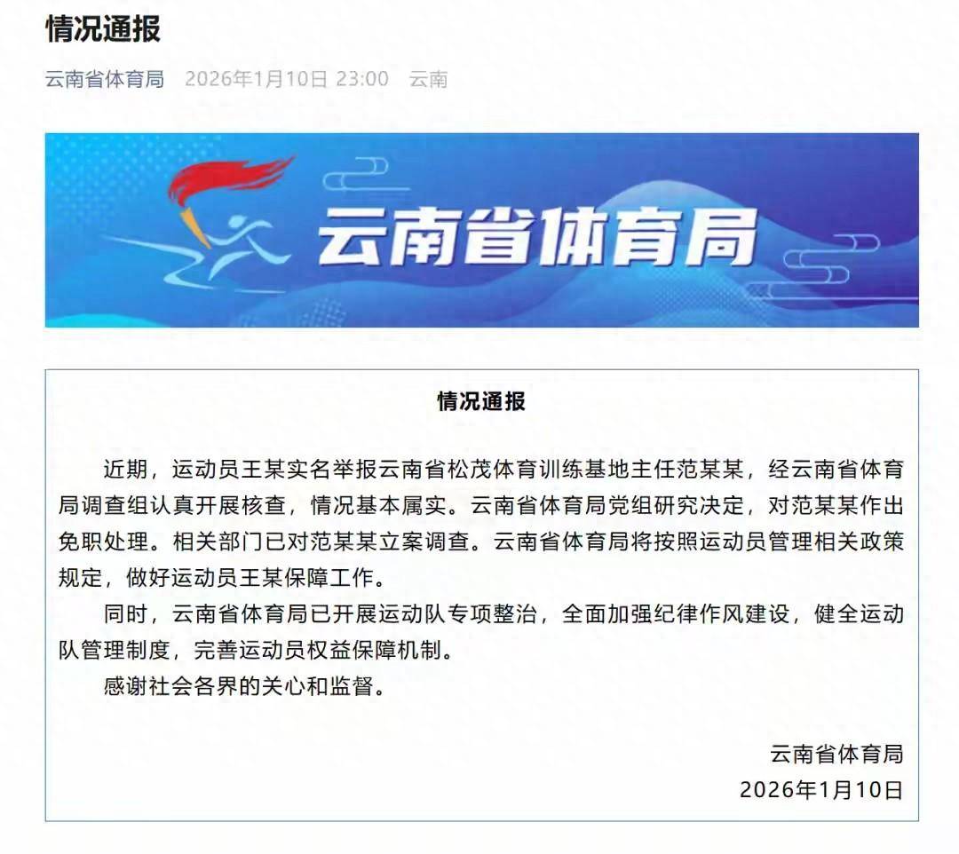 江南体育,江南体育平台,江南体育app下载,江南体育注册,足球竞彩,篮球竞猜,体育投注平台亚运会三金王实名举报训练基地主任索要15万奖金后续来了,云南体育局通报,王莉最新发声,网友炸锅