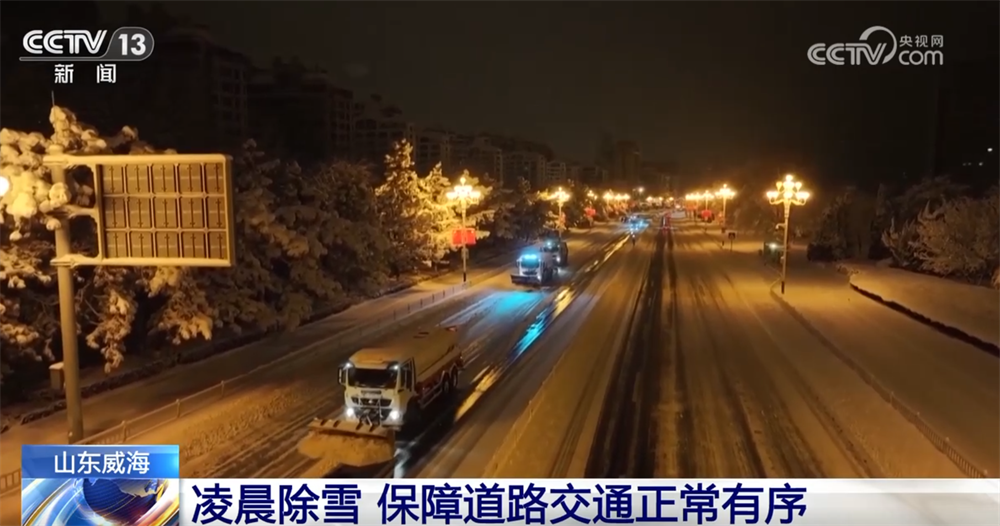 10日晚上11点多,山东威海迎来降雪。当地有关部门迅速组织人员开展清扫工作,保障道路交通正常有序。