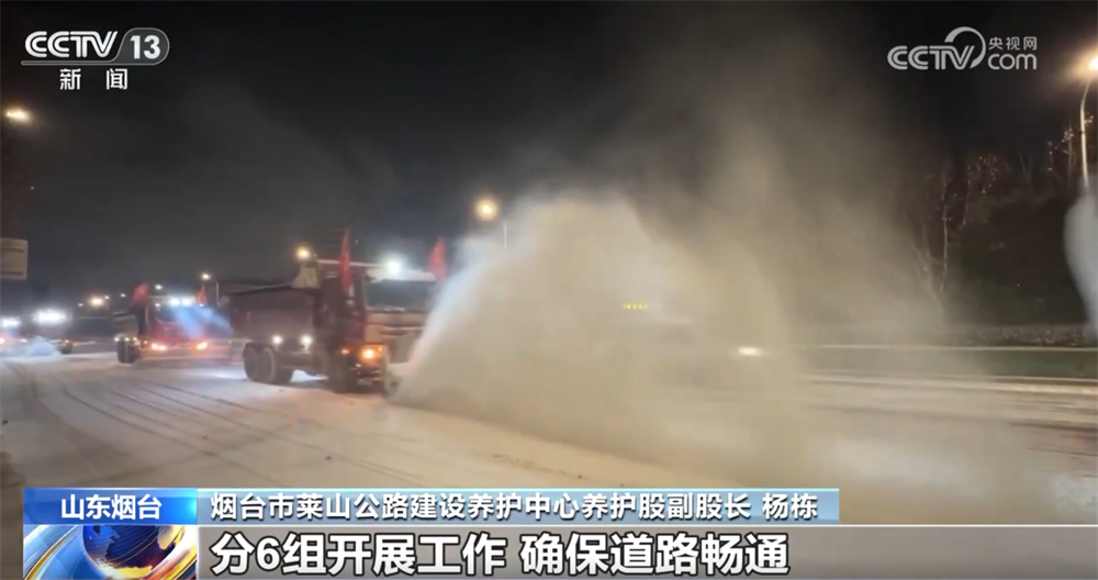 烟台市莱山公路建设养护中心养护股副股长 杨栋:对管辖的轸大路、莱源路、威汕路共82公里路段开展清雪防滑作业,分6组开展工作,确保道路畅通。