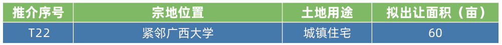 地块位于青秀区长福路以南、开泰路以东,用地面积约61亩,规划用途为城镇住宅用地(兼容≤3%的商业),其他规划指标待定。