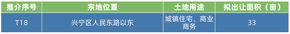 地块位于兴宁区人民东路以东,出让面积约33亩,土地用途为城镇住宅、商业、商务。其他规划指标待定。