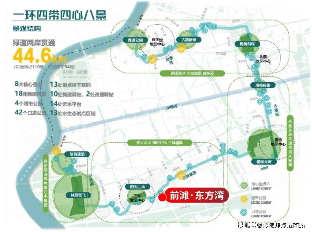 全长22.3公里的「世博水环」规划(陆家嘴水环2.0版)已正式启动建设,是探索超大城市滨水空间更新的国家样板。世博水环将与黄浦江滨江步道形成“滨水+滨江”的空间闭环,构建“一环四心四带八景”景观结构