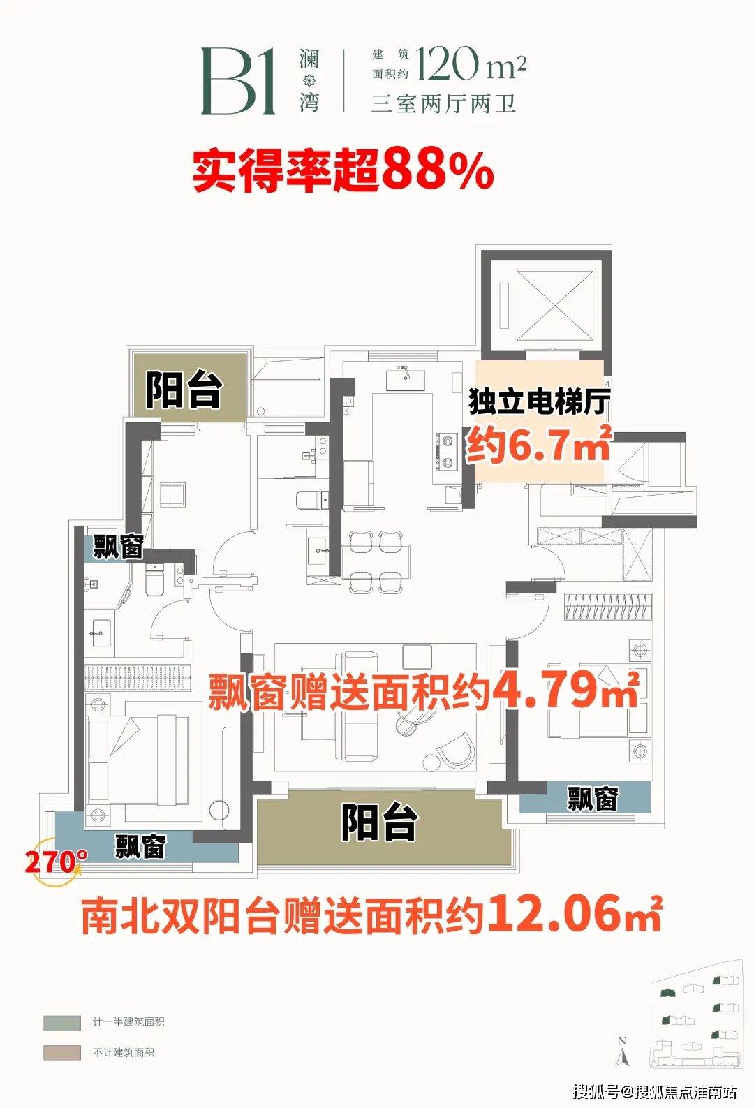 项目建面约120㎡大3房实得率非常高,在一众120㎡级产品中,户型质素和综合实力也是非常强的!